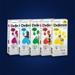A linha Defenza é um ectoparasiticida sistêmico de uso oral indicado para cães, proporcionando proteção prolongada contra pulgas, carrapatos e ácaros da sarna. Sua formulação à base de fluralaner garante eficácia por várias semanas com uma única dose, sendo uma alternativa prática e eficiente para o controle parasitário externo.
