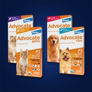A linha Advocate é um endectocida de aplicação tópica indicado para cães e gatos, oferecendo proteção completa contra parasitas internos e externos. Sua fórmula combina imidacloprida e moxidectina, atuando no controle de pulgas, vermes intestinais, sarnas e na prevenção da dirofilariose. Com aplicação mensal e ação prolongada, é uma solução moderna e eficiente para o manejo completo da saúde parasitária dos pets.