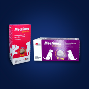 A linha Mectimax é um endectocida de uso oral indicado para cães e gatos, com ação no controle de parasitas internos, como vermes, e externos, como carrapatos e ácaros causadores de sarnas. Sua formulação à base de ivermectina oferece boa cobertura em diferentes tipos de infestações, sendo uma alternativa versátil para protocolos de controle parasitário, conforme orientação do médico veterinário.