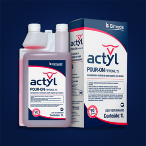 O Actyl Pour-on é um ectoparasiticida à base de fipronil, indicado para bovinos no controle de carrapatos. Com ação larvicida e adulticida, atua diretamente na quebra do ciclo do parasita, auxiliando na redução da infestação. Seu alto poder residual aliado à aplicação prática torna o produto uma excelente escolha para estratégias eficientes de controle parasitário.