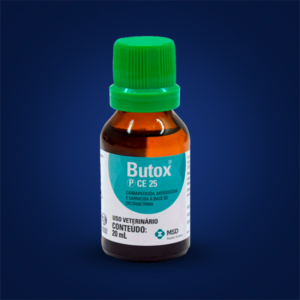 O Butox® é um ectoparasiticida à base de deltametrina, indicado para bovinos, ovinos e equinos no controle de carrapatos, moscas e ácaros da sarna. Sua versatilidade permite aplicação por pulverização ou banho, adaptando-se a diferentes manejos. É uma solução tradicional e confiável para manter o controle sanitário e o bem-estar dos animais.
