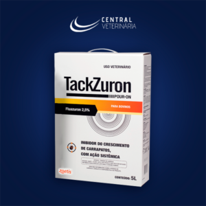 TackZuron Pour-on 5L é um ectoparasiticida sistêmico indicado para o controle estratégico do carrapato dos bovinos (Boophilus microplus), atuando diretamente na formação da quitina e impedindo o desenvolvimento das formas jovens do parasita. Formulado com fluazuron 2,5%, o produto apresenta ação prolongada e eficiente em todo o corpo do animal, prevenindo novas infestações e reduzindo significativamente a população de carrapatos no rebanho. De aplicação prática e pronta para uso (modo pour-on), TackZuron é ideal para programas de controle integrado, podendo ser associado a carrapaticidas adulticidas em casos de alta infestação. Uma solução moderna, segura e eficaz para o manejo sanitário dos bovinos.