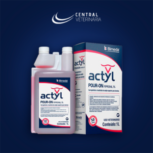 Actyl Pour-on 1L é um carrapaticida e inseticida de amplo espectro desenvolvido especialmente para o controle eficaz do carrapato dos bovinos. Com fipronil 1% em sua formulação, o produto atua como larvicida e adulticida, garantindo resultados comprovados, até 98,7% de eficácia, poder residual de até 46 dias e carência de apenas 50 dias, uma das menores da categoria. De aplicação prática no dorso dos animais (modo pour-on), Actyl Pour-on oferece proteção duradoura e manejo seguro, auxiliando produtores e profissionais no controle estratégico de parasitas externos e na manutenção da produtividade do rebanho.